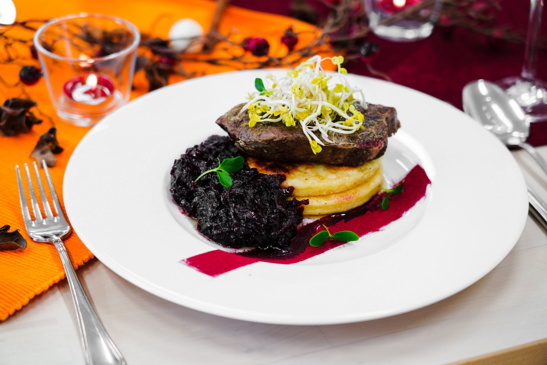 Specialitou kuchyně jsou borůvkové knedlíky z našich borůvek z Jeseníků. Ochutnat musíte i pořádné steaky, které sami porcujeme.