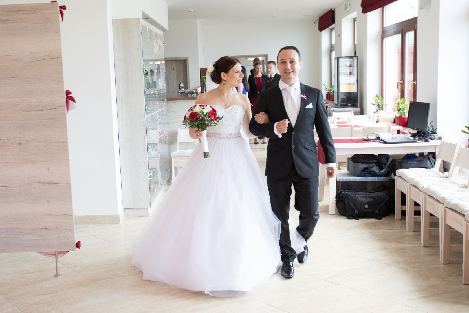 - Samozřejmostí jsou svatební potahy na židle se saténovými mašlemi